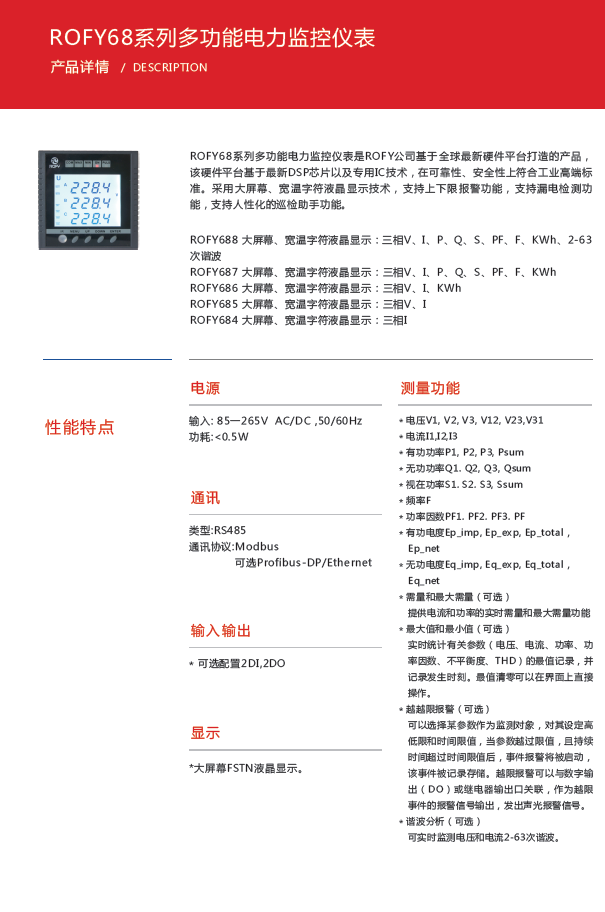 ROFY公司发布ROFY68系列多功能电力仪表