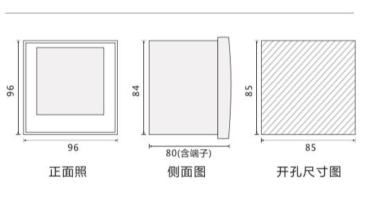 可选择 40 A 60A 100A直接接入 当电流大于100A时,选择外部CT接入。请在订 货时说明。